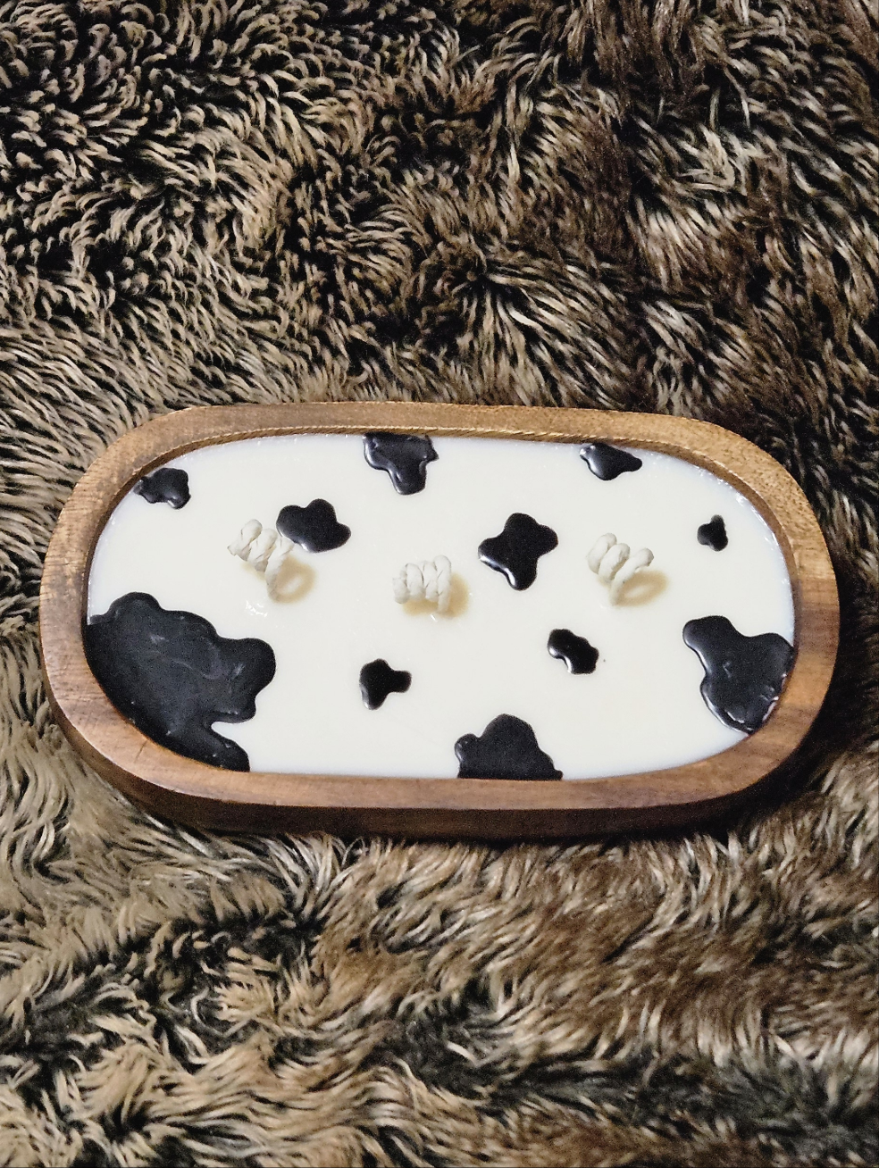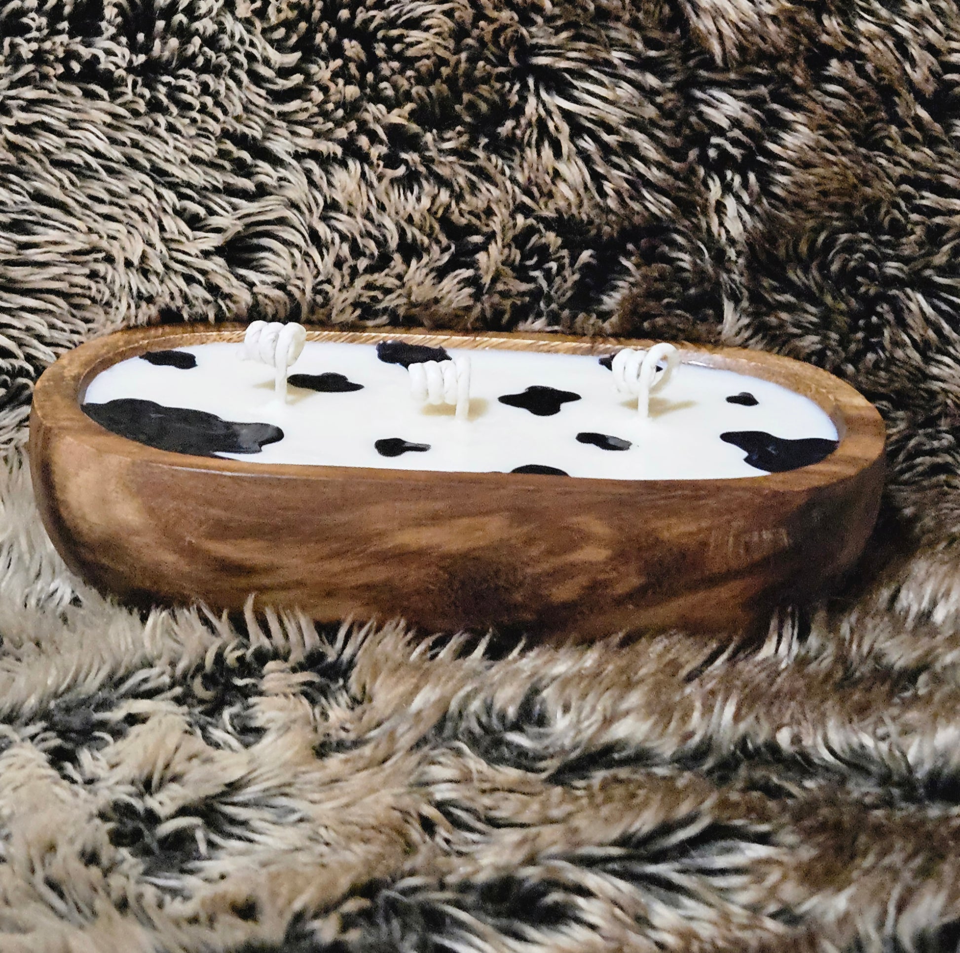 Experience the exhilarating aroma of Pineapple Cilantro, captured in a stunning Acacia Wood Wooden Bowl adorned with a charming cow print pattern. Scent inspired by Yankee Candle. 1LB wax THIS CANDLE HAS SLLIGHT COLOR BLEED & FADE. This is due to being Natural Soy Wax.